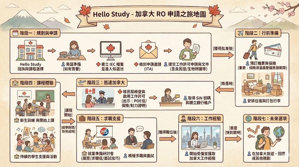 RO 是有一年的合法工簽可以停留加拿大,與打工度假相同。若是透過RO語校方案,學校會提供 職前求職協助輔導,如履歷撰寫、面試技巧指導,有些學校每年也會舉行Job fair。