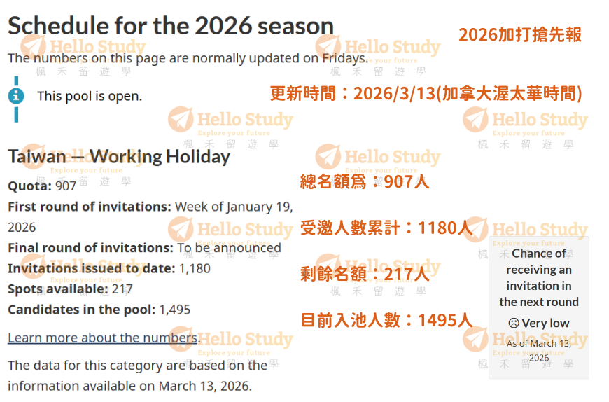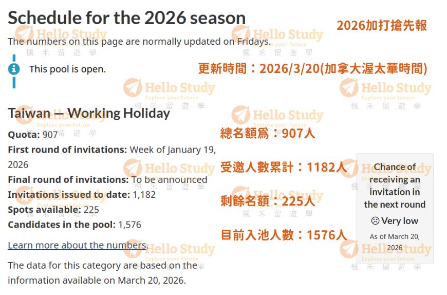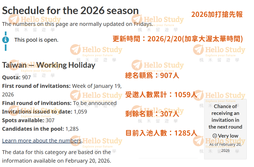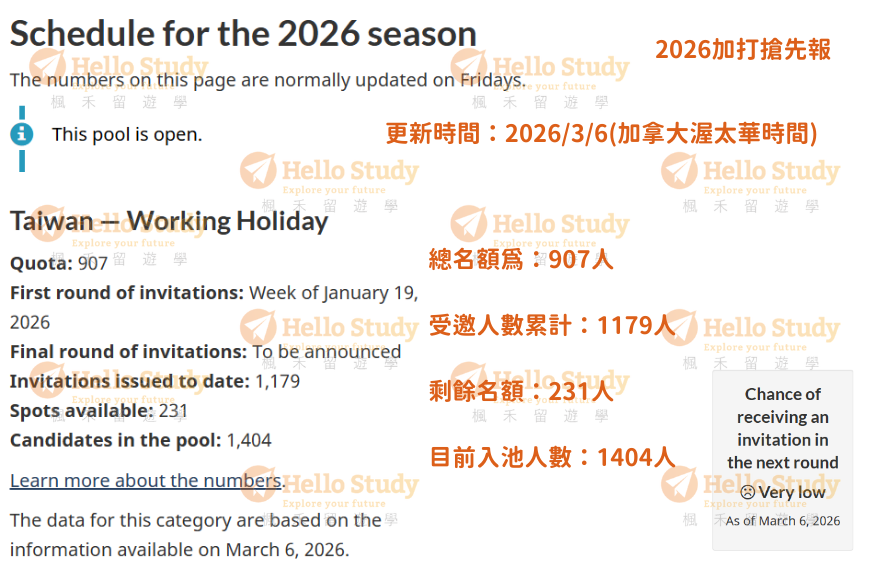 這句話就是說,加國政府擔心受邀者拒絕邀請、受邀者邀請信擺到過期、受邀者簽證被拒,因此就算最後一輪宣布名額為零,還是會發出一些邀請給池中候選人!HelloStudy建議有預算及時間考量者,也可以投入候選池,直到加拿大官方正式宣布當季結束為止。