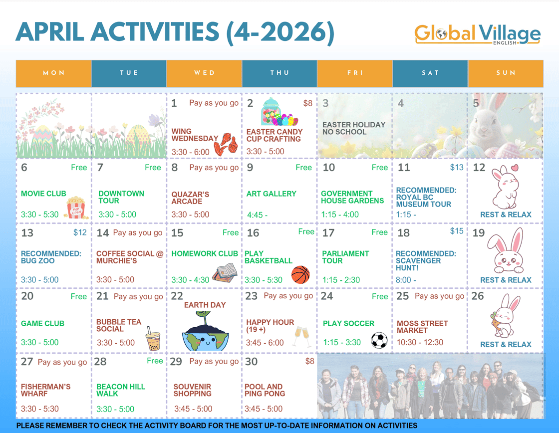 GV特有的熟齡暑期英文,混和不同年紀和不同國籍,在相仿的人生階段中一起學習英文。除每週25堂語言課程外,也有許多適合熟齡人參與的加拿大活動安排!課程價格 👉 請洽顧問群。