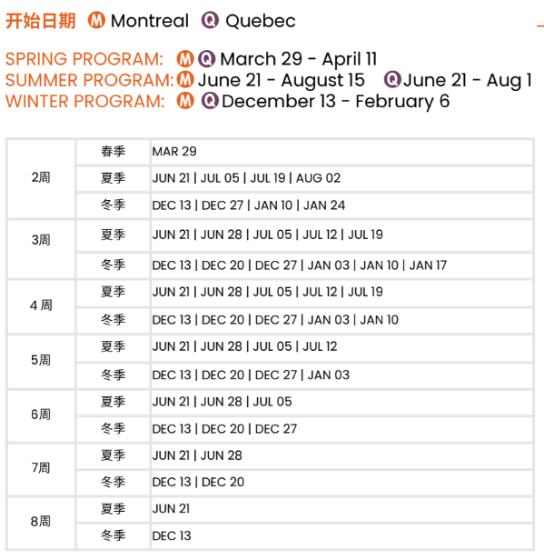 校區: 蒙特婁 (英文、法文課程)魁北克 (法文課程)