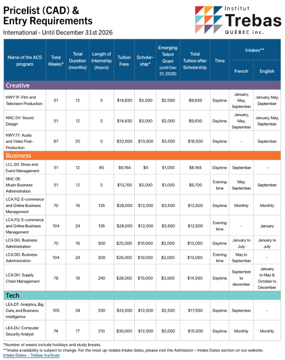 學費:加幣$25,000獎學金:加幣$10,000新秀獎助學金:加幣$2,000- 優惠價:加幣$13,000(共省加幣$12,000!)