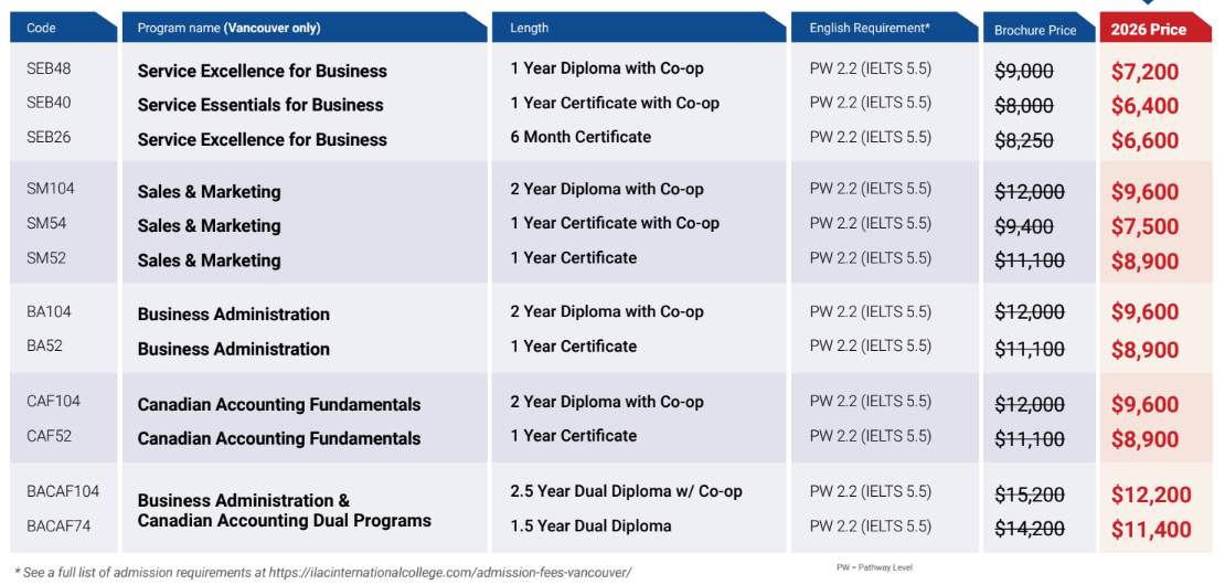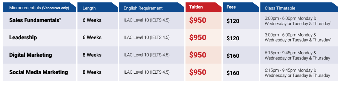 - 報名12週以上每週學費以CAD$ 99 計算!