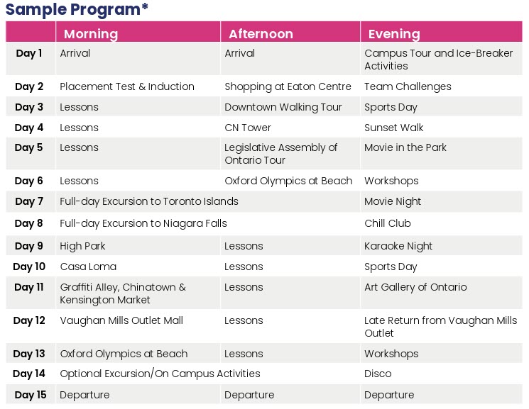 在TMU度過一個難忘的冒險體驗!以多倫多充滿活力的城市氛圍為背景,我們的夏令營提供了一個獨特而豐富的體驗,結合教育、娛樂和探索。加入我們進行令人興奮的活動,包括前往尼加拉瀑布的遠足、藍鳥隊棒球賽、海灘遊戲、Outlet mall購物等活動。