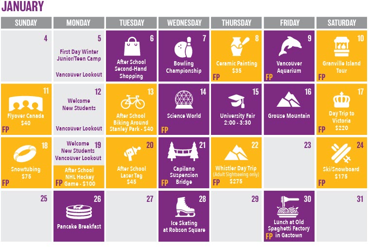 代辦行政費、eTA、註冊費、學費、教材費、寄宿家庭安排費、寄宿家庭費用、全日校外活動5天、半天課後活動5天、醫療保險、機場接送、監護信 - ❌費用不包含: